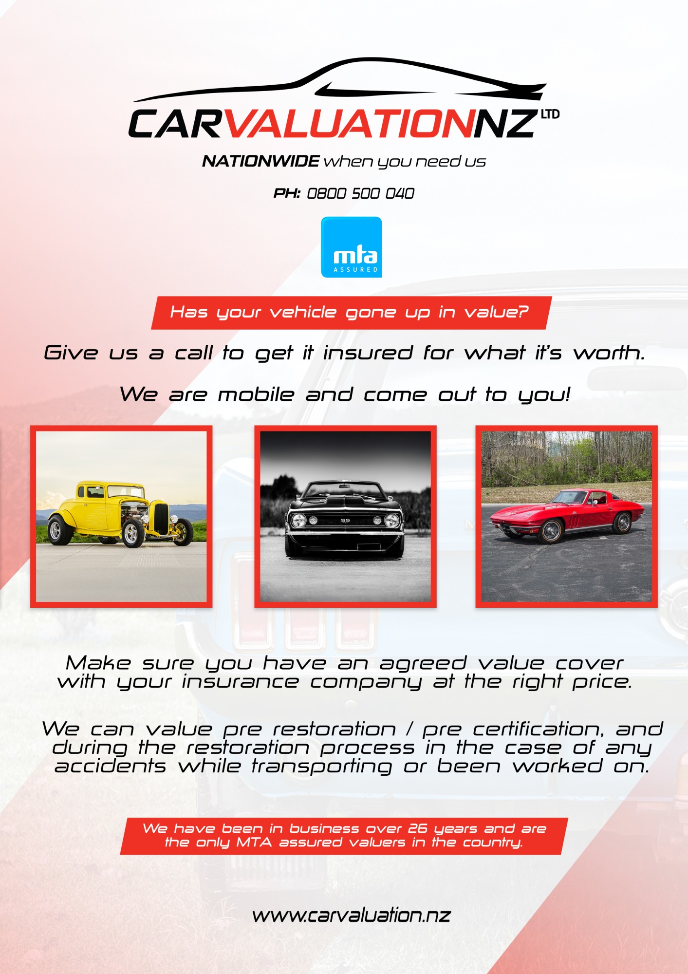 Email Leon at info@carvaluation.co.nz or call 0800 500 040
