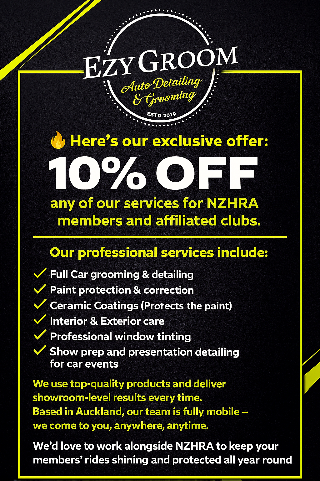 10% off any service for NZHRA affiliated members and clubs